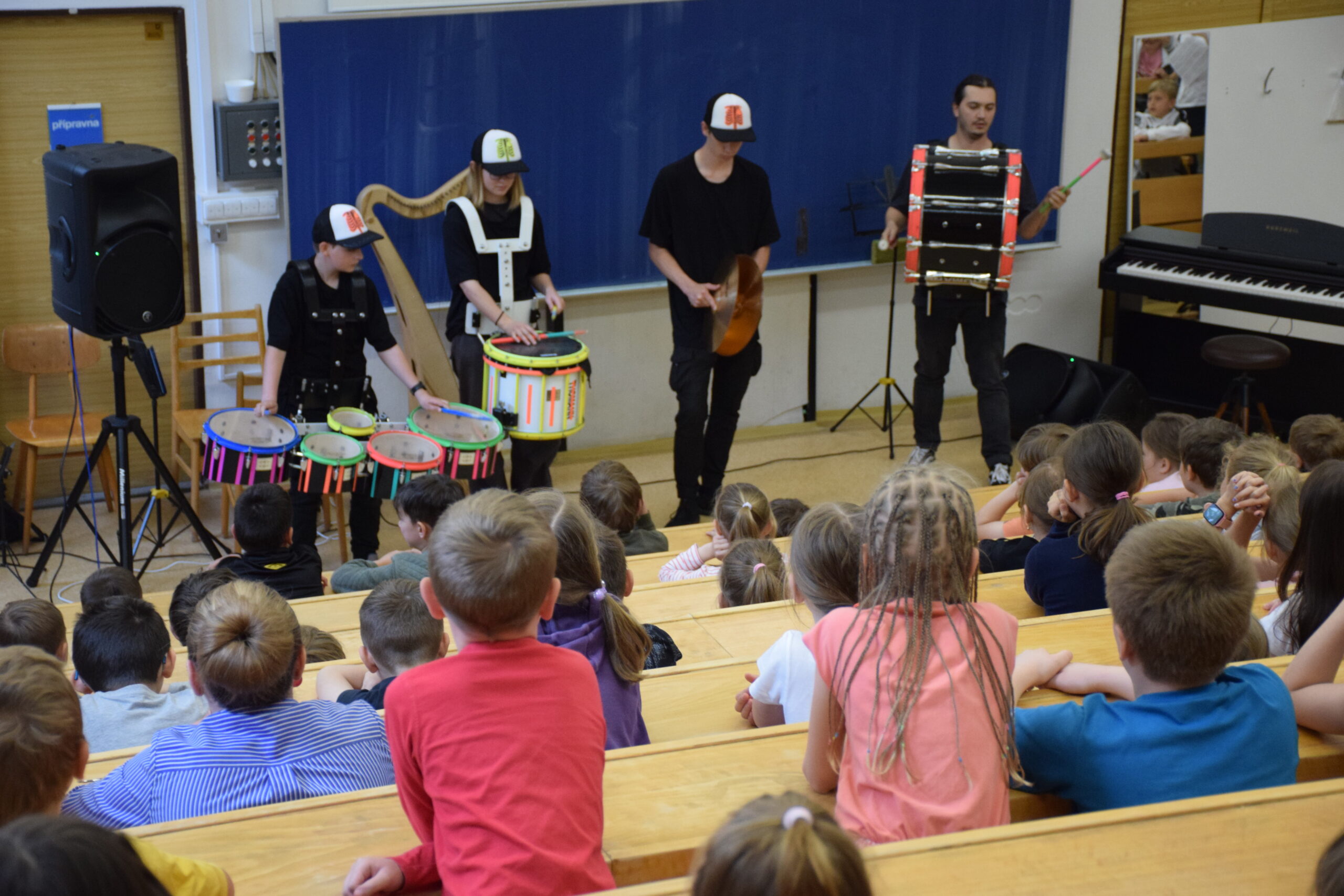 V úterý 6.6.2023 od 9:00 a od 10:00 proběhl v aule ZŠ Na Beránku výchovný koncert žáků ZUŠ MusicArt. Na tomto koncertě zahráli kromě klavíristů také flétnisté. Velkou zajímavostí koncertu byla hra na bubny, harfu a saxofon. Celý koncert zaznamenávali žáci z filmařského kroužku Šimon Čermák, Tomáš Procházka a Jan Vaněk. *** Článek napsali JaV…